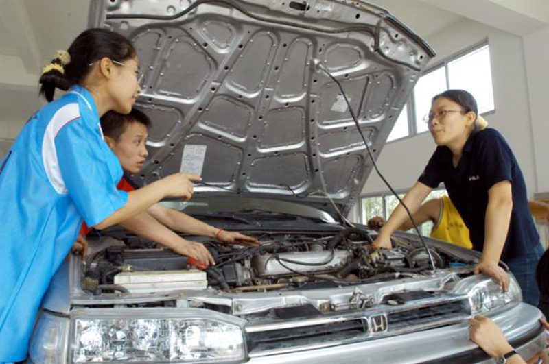 图6 驾驶实习 图7 员工排除汽车故障