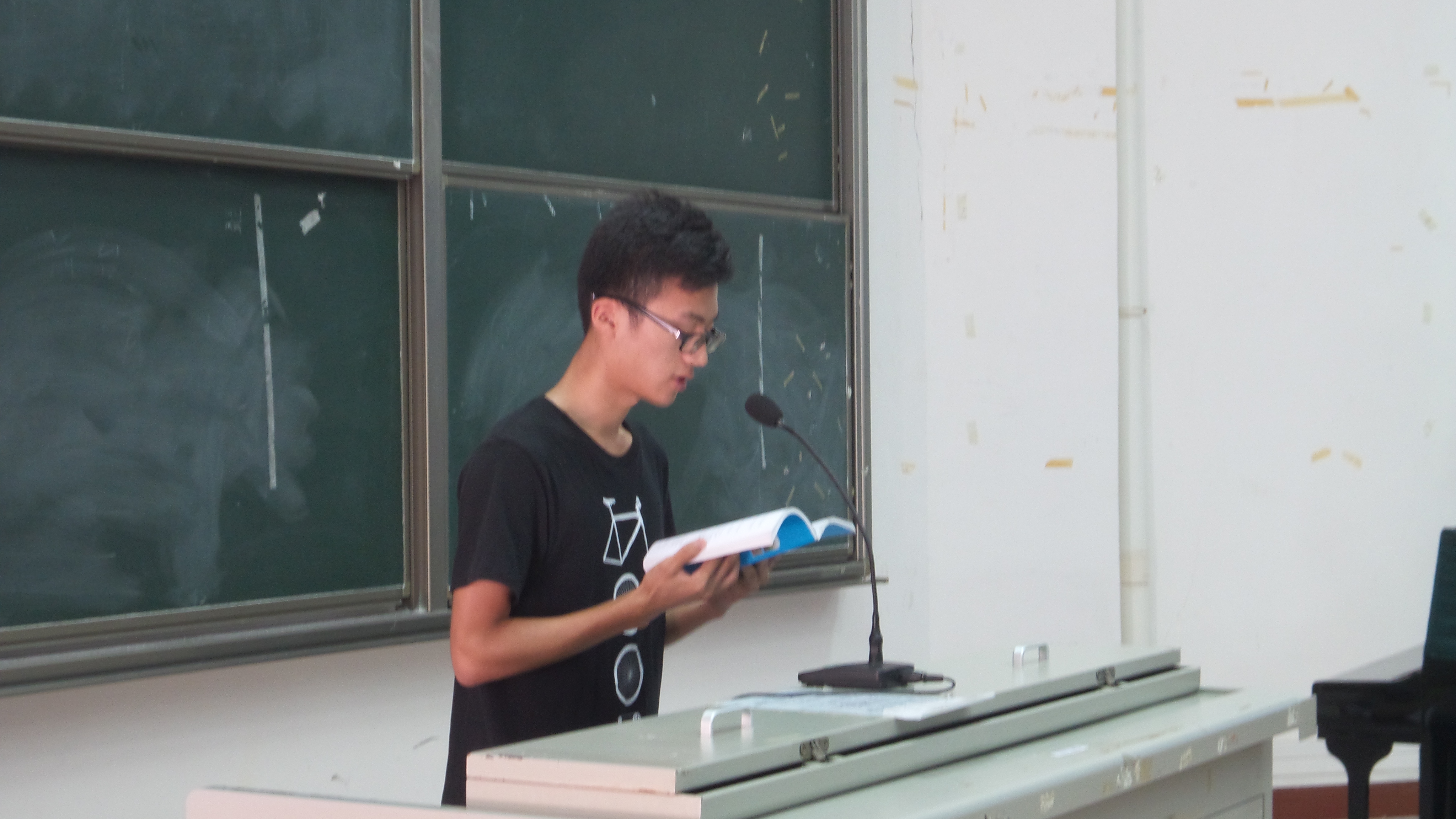 首先,14级员工代表蔡宽麒发言,他说明了学习、复习、诚信考试的重要性。随后14级年级工作委员会组长罗浩宇宣读了上学期期末考试违纪处分文件,给予广老员工以警示。