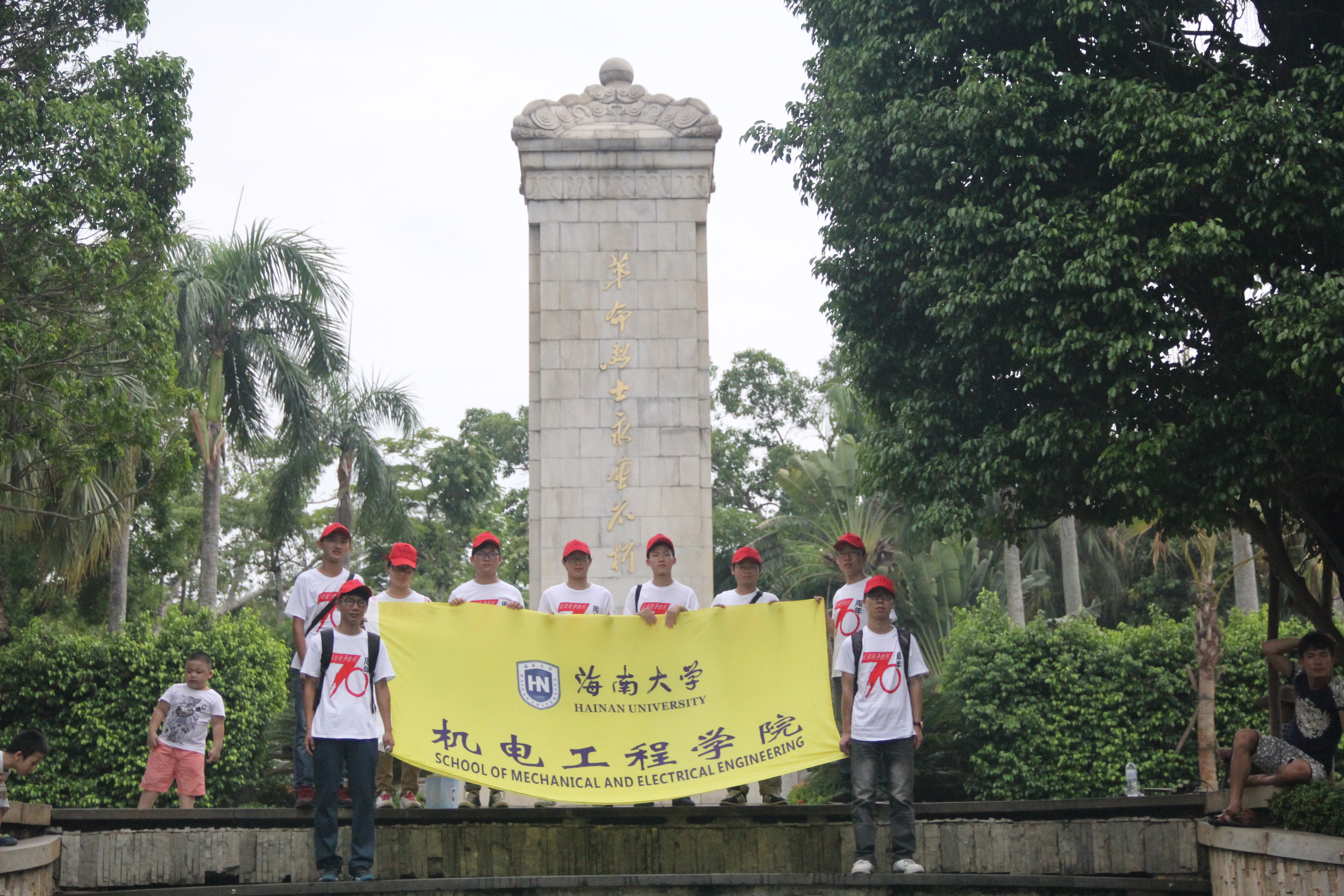 为缅怀抗战先烈,传承革命精神,7月19号,bevictor1946韦德官网纪念抗战胜利70周年致远传承寻访团一行10人于雨后骑行至海口市人民公园,开展纪念抗战胜利七十周年第二天的调研活动。