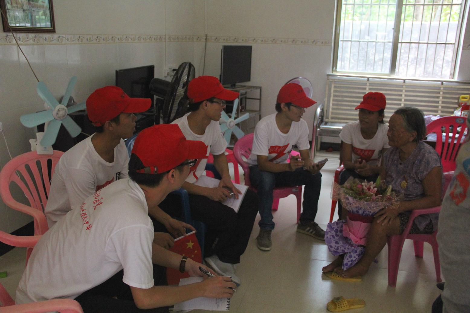 经过一路颠簸,寻访团来到地绿村的抗战老兵赖月花同志家中。她已经93岁,依旧精神焕发,身体十分硬朗。她向寻访团讲述自己的故事,战争给人民带来深重苦难,她不惧危难于1941年加入琼纵独立团,作为一名护士在抗战最前线与敌人英勇作战并负责后勤工作,虽然环境十分恶劣生活极其艰苦,为了祖国的安危,她选择了坚持为现在的和平生活做出巨大贡献。同学们深深的被赖月花同志的英雄事迹所震撼,感动得纷纷留下了眼泪。随后,寻访团来到群建村的抗日老兵陈青同志家中。93岁高龄的她热情欢迎我们的到来,像我们谈起那段刻骨的往事。在海南饱受日军侵略之时,她没有选择逃避,满怀壮志豪情的她于1938年入党,与敌人斗智斗勇。面对凶残的敌人她没有畏惧,面对恶劣的环境她没有抱怨,一心把党放在心中以祖国安危为大。她讲述着当年抗日战争的经历,把我们带回到那个战火纷飞的年代,同学们被老人的勤俭朴素,艰苦奋斗的抗战精神所感动。临走时,老人还告诫我们青年老员工,要铭记历史,立志勤学报效祖国,发挥专业特长服务社会,为建设伟大祖国而不懈奋斗。接着,寻访团来到位于文昌市昌洒镇古路园村的宋氏故居。在解说员带领下,我们走进宋氏纪念馆并详细了解宋氏家族的发展史,宋庆龄的家世再到宋庆龄积极投身民主革命并在抗日风云中的一些事迹然后成为杰出人民领袖,她为世界和平作出不懈努力成为世界和平使者,她关心下一代成长,致力缔造未来并为家乡建设做出卓越贡献。一幅幅字画,一件件大事给同学们留下深刻的印象,同学们参观之余详细的作出笔记。随后我们来到了宋氏祖居,宋氏祖居为传统的海南民宅建筑,围墙正门横楣上方由邓小平题写“宋氏祖居”四个金色大字,走进故居我们看到了宋氏家族所用过的日常用具及房屋的布局。通过讲解员的详细解说使我们对宋氏故居有一个更加全面的认识,收获颇多。