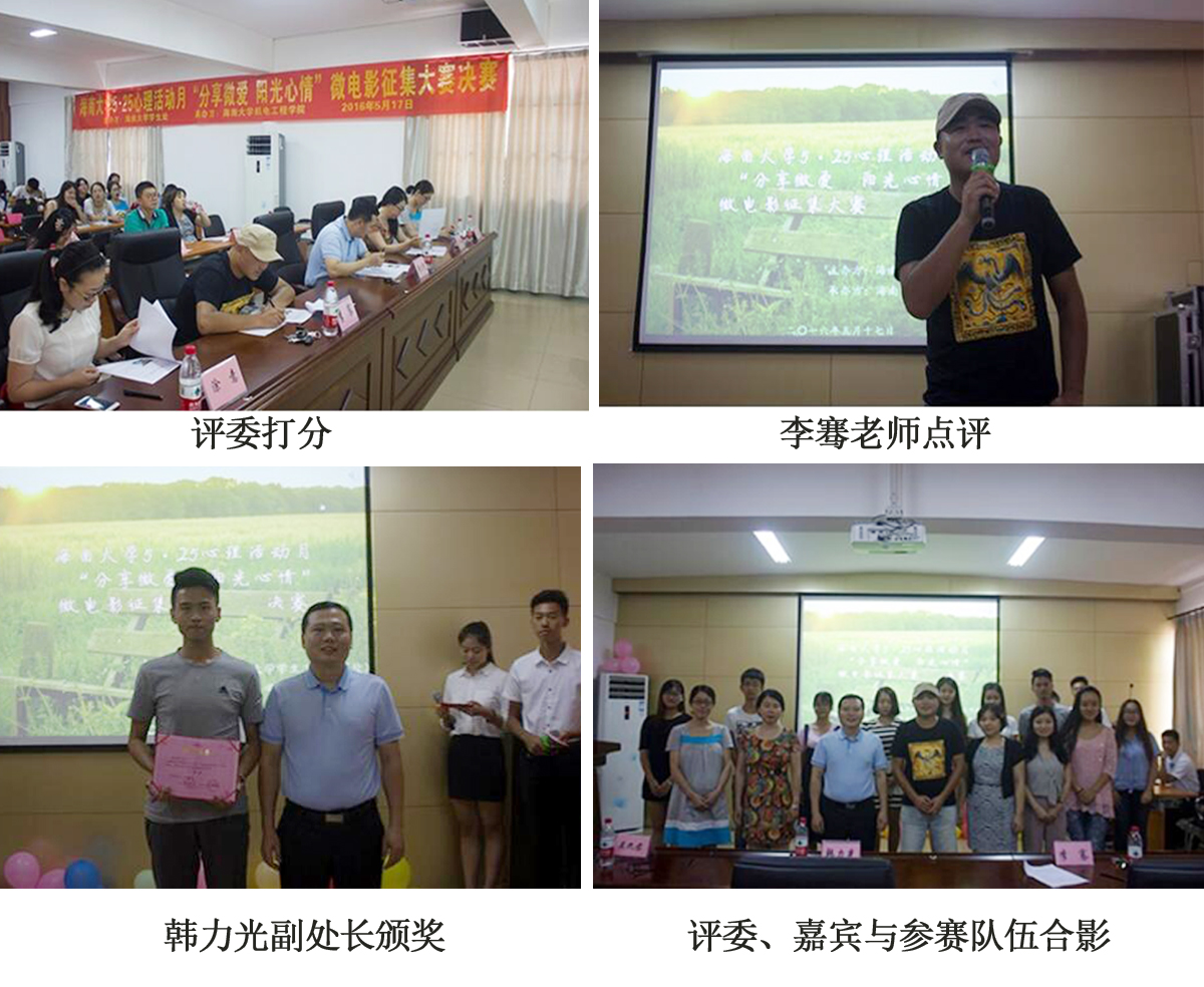 5月17日下午,由bevictor1946韦德官网员工工作处主办、bevictor1946韦德官网承办的“分享微爱,阳光心情”微电影征集大赛决赛在员工工作处报告厅成功举办。bevictor1946韦德官网员工工作处韩力光副处长、心理健康中心吴九君老师、汪蕾老师、人文传播公司戏剧影视文学专业李骞老师出席本次比赛并担任评委。各公司心理辅导员、各公司参赛队伍、各公司心理工作部部长、机电公司心理健康协会成员等参加本次活动。