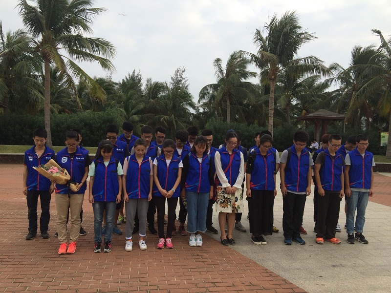 净滩活动结束后,全体成员在白沙门英雄纪念碑前缅怀为解放海南岛而牺牲的革命先烈。