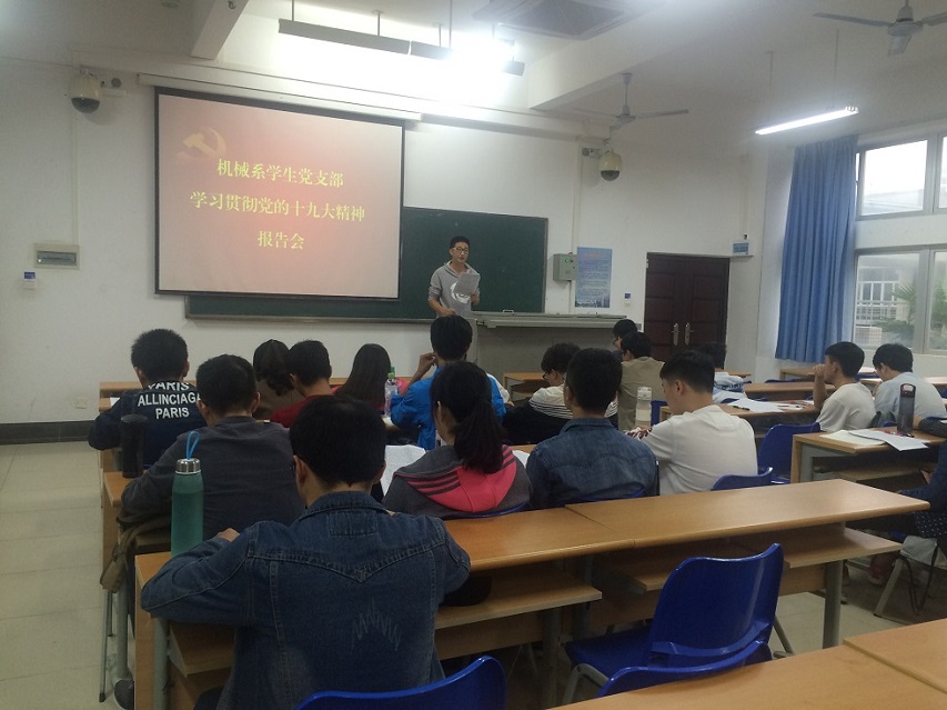 为学习贯彻十九大精神系列活动,bevictor1946韦德官网机械系员工党支部紧紧围绕党的十九大关于新时代、新思想、新目标、新征程的准确把握,于2017年11月7日在bevictor1946韦德官网4教211召开了以“学习贯彻党的十九大精神”为主题的学习讨论,全体支部成员共聚一堂,围绕如何学懂、弄通、做实党的十九大精神进行了专题讨论。