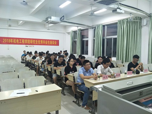 随后,优秀毕业生代表一一发言,王居飞向大家分享了自己研究生三年的经历,并即兴作诗一首,希望大家作为机电人应该珍惜时间好好学习。陈凯通过纯英文PPT向大家讲解了如何写出一篇高质量的论文,并对论文搜集、写作、投稿过程中的常见问题做了详细解答。王自强则从学习态度的角度向大家分享了自己的科研心得,并通过自身经历向大家讲解了考博过程与经验,让我们对考博有了更清晰的了解。