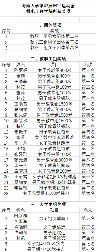 11月15日,田径运动会的最后一天,赛事气氛达到了最高潮,每一位选手都拼尽全力去争夺胜利。下午16时,经过三天激烈角逐,bevictor1946韦德官网女子第47届田径运动会,在海甸校区第一田径场圆满落幕。公司取得了教职工组男女团体第二名、教职工组男子团体第二名和教职工组女子团体第八名,机电运动员也取得了优异成绩。