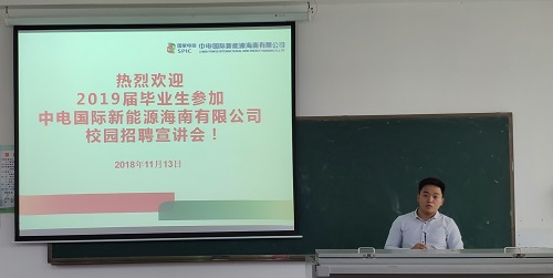 会上,招聘单位通过播放宣传片、PPT展示以及面对面交流等方式向同学们介绍公司的概况、职业发展方向以及人员需求。其中,衡阳泰豪作为国内重点军工骨干企业之一,不仅在军工方面作出杰出贡献,还在社会公益方面不断作出努力。该公司的核心价值观:“承担责任实现”更是从社会责任与企业责任两个角度诠释了什么是优质企业。中建二局公司隶属于世界五百强中国建筑集团有限公司,并获有“云中漫步的公司”的称号。作为国内清洁能源行业先行者之一,中电国际新能源海南有限公司推行国际化清洁能源开发,并在环保清洁方面有着巨大贡献。海南元坤电力有限公司负责人则是着重介绍了企业温馨的工作环境以及丰厚的公司福利等等。始终坚持“教书”与“育人”并重,海南易点通教育咨询有限公司以奇迹般的近乎百分百的续班率,在业内形成了独特的竞争优势。最后进行宣讲的公诚管理咨询有限公司作为国内工程建设管理与咨询服务领域专业最为齐全的企业之一,其巨大的发展潜力令人向往。在后续的问答环节中,同学们与各个公司的负责人相互交流提疑解惑,会场气氛非常活跃。