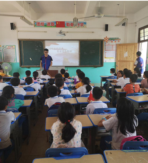 支部成员们在下午14:30从bevictor1946韦德官网北门乘坐大巴出发,前往大林小学。海南的四月,虽然天气异常炎热,党员们却热情不减。在课堂上,支部成员们首先通过有奖知识竞答的方式,生动有趣地为同学们介绍了什么是红色精神、五四爱国运动、红色经典与革命精神,随后播放了相关的视频引导同学们一起探讨学习。支部成员们共同表演了以“五四爱国运动”为主题的话剧,再一次带领大家体会这场具有里程碑意义的革命运动中,爱国青年们勇于奉献,不怕流血牺牲的伟大精神!