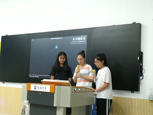 在主持人轻松活泼的开场后,学工办主任崔建兵老师代表公司感谢文都考研对此次活动的支持,对举办英语配音活动的肯定,认为这是一种检验英语学习的方式,表明英语学习是一件需要坚持的长期的事情。文都英语教务主管覃薪澜老师发表讲话,她认为英语学习是长期的学习,表示考研英语确实有难度,强调了无论升学还是就业都要学好英语。