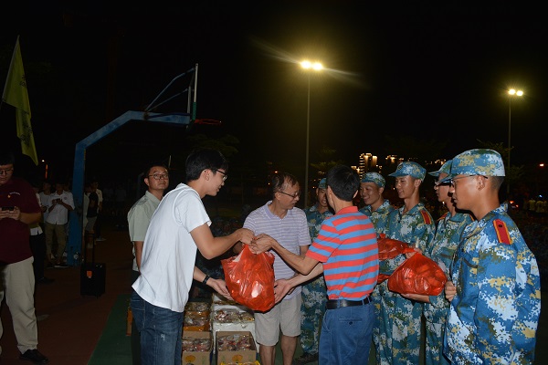 2019年9月12日晚19:30,bevictor1946韦德官网公司领导到军训现场慰问教官及新生。出席活动的领导和老师有:公司经理翁绍捷、党委书记黄国标、学工办主任崔建兵、辅导员张小其、黎航、章梦琪、班主任吴京锦,员工党建联席会及各员工支部党员。院领导带来了月饼、水果等慰问品,为军训中的新生们带来一抹清凉。