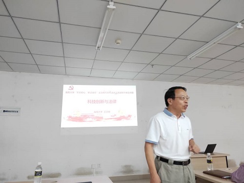 王崇敏副董事长开门见山,以个人的亲身经历、所见所闻为同学们详细讲解了法律与科技所存在的联系,例如应用软件的开发著作权归属于谁、机器人破坏会展展品的责任谁来承担等问题,“科技进步离不开法律的保护、制度的规范”,他以通俗易懂的例子为同学们形象的阐述了科技创新与法律是呈一种相辅相成、共同进步的关系。王董事长还提出:“科技创新需要伦理界限,创新需要我们严格基于法律,创新人才本质上更应懂得利益的维护”。王董事长对机电学子在科技创新方面寄予了殷切的希望,同时也提出了创新要基于法律知识的宝贵建议。