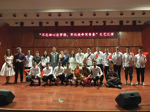 党建联席会指导老师崔建兵老师上台致辞,他对此次晚会的圆满举办表示肯定,同时结合活动主题提出两点要求:一是作为新时代青年要不忘初心,继承和弘扬爱国主义精神、革命文化精神。二是要努力的学习专业文化知识,服务身边同学,服务社会,做一位对社会有用的人。