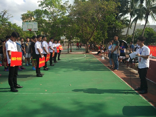 汽车系员工党支部书记印一凡宣布“红色机电杯”员工党支部篮球赛开幕。