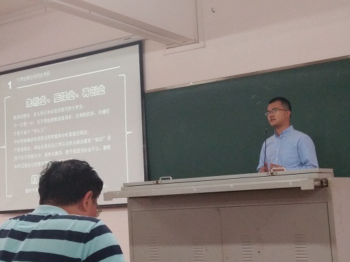 随后,严运佳经理结合自己身边同学的创业情况来提出了他自己的看法。他提到,在为创新创业做准备的过程中,坚持是非常重要的。同时他也分析了目前的创业形势和趋势,鼓励大家要善于抓住机会。