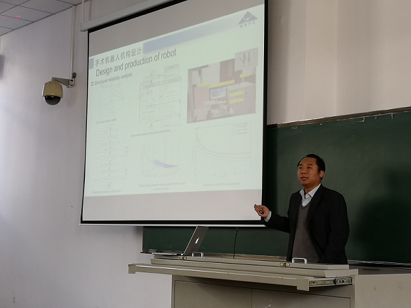 杨志永教授此次授课以“图像导向下的穿刺机器人的技术研究”为主题,并从介绍天津大学、医疗机械的背景与发展、手术机器人机构设计、手术机器人发展、合作与交流五大部分内容展开,围绕解决前列腺问题的核磁导向机器人、3D模板治疗肿瘤、立式近距离粒子植入设备一系列科研成果向员工介绍了医疗机械的广泛应用以及良好成效,在介绍个性化近距离粒子植入手术虚拟现实环境时,杨教授展示了虚拟室内模拟、心脏模拟等虚拟图像,强调了这一技术的发展将大大促进医疗技术的提升。