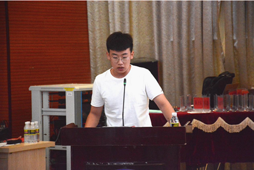 16级黄腾远同学代表车队全体成员表达了对老员工方程式赛车热爱并宣誓将为公司南海车队的发展建言献策。