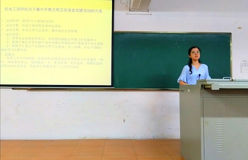 会议开始,袁周米琪老师向全体员工干部介绍《公司关于集中开展文明卫生宿舍创建活动的方案》,要求各班级组织同学加强宿舍文明卫生建设,并组织卫生检查活动。接着她又提到了“到梦空间”系统的使用,并给大家介绍该系统的相关情况,要求各团支部做好第二课堂成绩单的相关工作。
