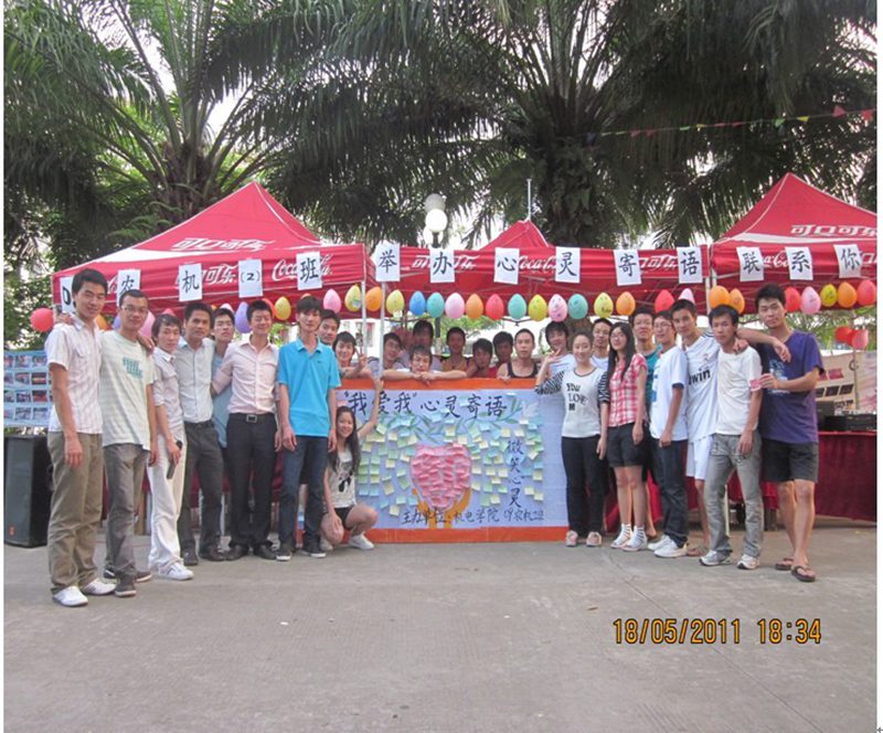 活动从下午4:30持续到6:30,期间播放了老员工心理健康教育的广播,宣传了心理健康的重要性及必要性。来往的同学也积极响应,写下自己对美好生活的寄语,并在“温馨阳光,微笑心灵”的活动主题的横幅上签下自己的名字,以实际行动表明了热爱生命,积极乐观的生活态度,以及对美好青春的祝福。最后,机电公司辅导员崔建兵老师和班主任林茂老师也来到我们的活动现场为我们写下祝福语,并在活动结束后与我们所有工作人员合影留念!