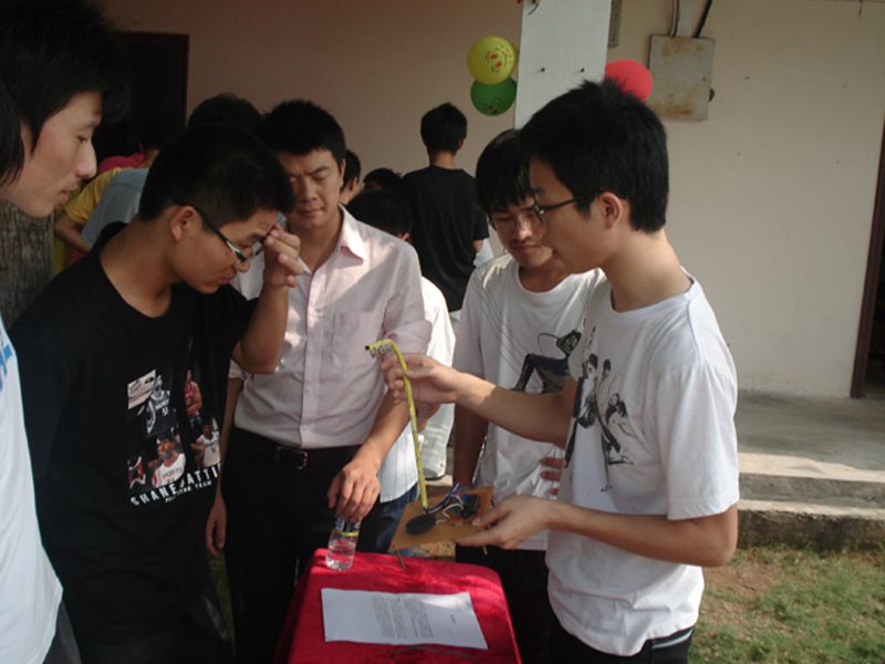 本次活动分为三个区,师生交流区,作品展示区,员工交流区。交流会一开始,同学们就纷纷将老师们团团围住,就生活、学习以及所学专业在未来的就业方向等方面向老师咨询,老师们耐心、真心、热心地为同学们一一解答;作品展示区的作品吸引了很多同学,他们饶有兴趣的看着师兄师姐们亲手制作的各种作品,视频材料,海报,和师兄师姐进行交流。其中感应赛车吸引了众多同学的目光,他们很好奇地向制作者和指导老师请教制作赛车相关的各种专业知识。天气虽炎热难当,但同学们和老师、师兄姐们的交流兴趣不减,现场气氛热烈活跃。