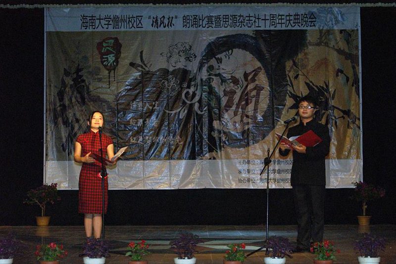 为了传承中华文化,陶冶老员工性情,增强其使命感,6月7日晚,由校团委思源杂志社主办的“清风杯”诗歌散文配乐朗诵比赛,在儋州校区老员工活动中心隆重举行,公司选送的《青春中国》、《祖国在上》分别荣获第一名和第三名的骄人成绩。