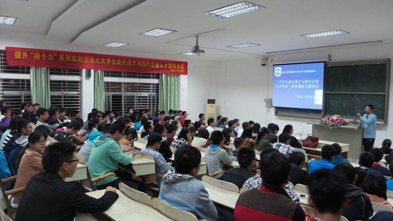 12月14日,bevictor1946韦德官网邀请海南现代科技集团董事局副局长兼海南赛诺实业有限公司CEO邢青涛先生在3教212为公司新生作 “老员工成长成才与现代企业人才需求”的主题讲座交流会。公司党委副书记黄国标、辅导员李青老师、海南现代科技集团一行人同部分新生一同聆听了讲座。讲座由黄国标副书记主持。
