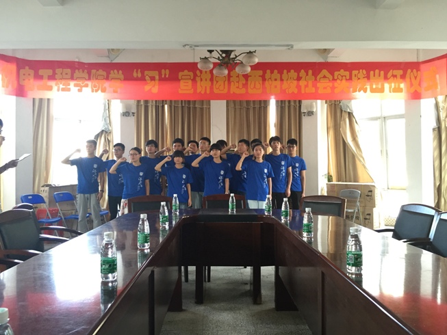随后,实践队全体队员在队长胡鑫宇的带领下完成宣誓仪式,表达了队员们对此次赴西柏坡进行社会实践调研的决心和信心。最后黄国标副书记为实践队授公司院旗,此次出征仪式圆满结束。