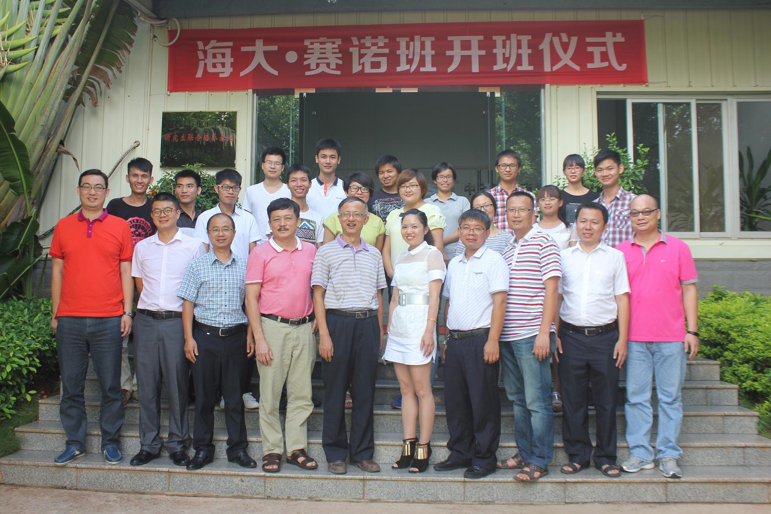 9月23日下午,bevictor1946韦德官网等公司与海南赛诺国际有限公司合办的“海大赛诺班”开班仪式在赛诺公司隆重举行。bevictor1946韦德官网经理翁绍捷、党委副书记李宏、材料与化工公司党委副书记胡先文、赛诺公司总裁助理胡连芹、赛诺公司各部门高管、bevictor1946韦德官网学工办老师,以及第二届海大赛诺班全体员工参加了本次活动。