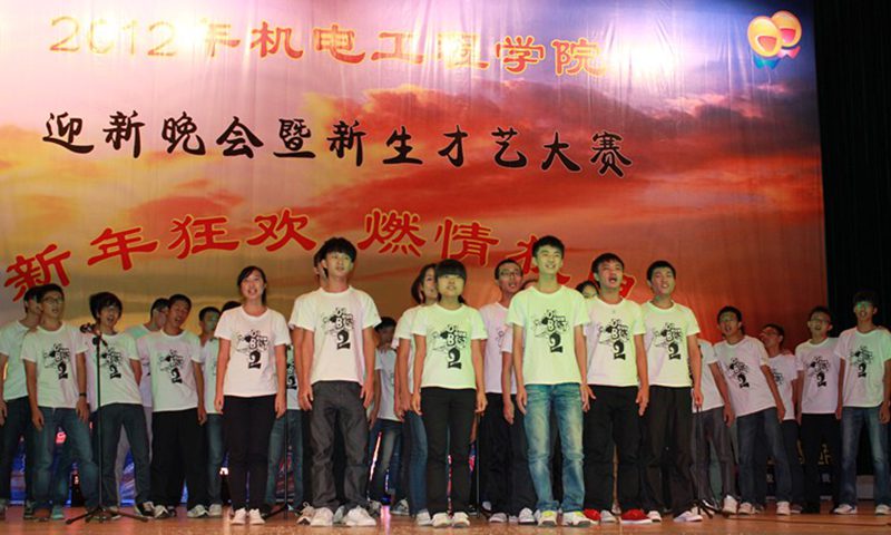 晚会在别具一格的视频宣传中拉开帷幕,开场曲《天空之城》和《雨蝶》将气氛引入了高潮,观众的声声呐喊、阵阵掌声让本来拥挤的思源学堂更加激情四射;搞笑舞蹈《走你机电》、吉他弹唱《梦想》、粤语歌曲《红日》、架子鼓独奏《此岸》、相声《疯狂在线》、笛子伴舞《梁祝》等都为大家送来温馨与欢乐;大合唱《明天会更好》让我们看到了2012级新生的团结与活力,以及对未来美好的期待;晚会在歌伴舞《阿飞的小蝴蝶》中完美落幕。小品、歌舞、相声、互动游戏、微博互动以及抽奖等丰富多彩的节目,给现场个观众带来了一场全新的视觉盛宴。