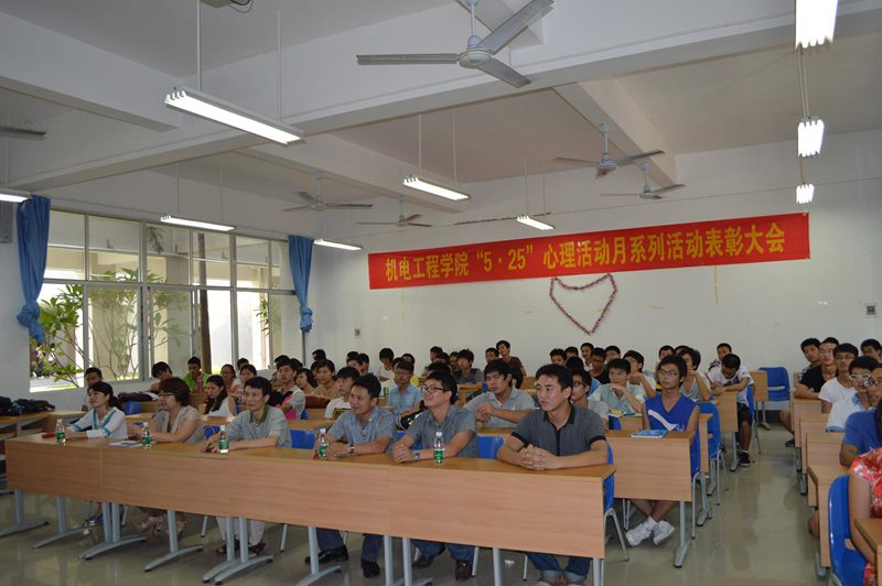 2013年6月7日下午4:40,2013年5•25心理健康宣传月表彰大会在4教103教室拉开帷。公司党委黄国标副书记,学工办主任陈秀妍老师,辅导员何映敏、崔万春、崔建兵老师,以及在本次活动中获得表彰的先进班级和个人出席表彰大会,来自各班级班长和心理委员近百名员工参加了本次表彰会。