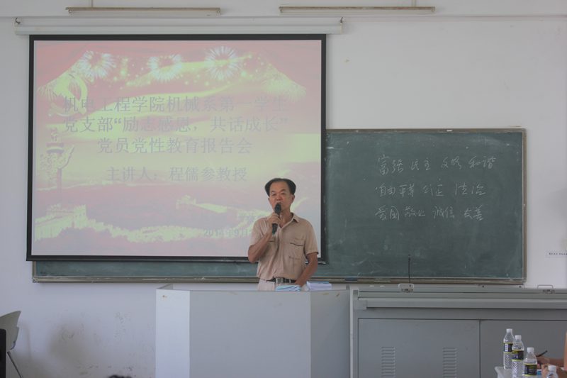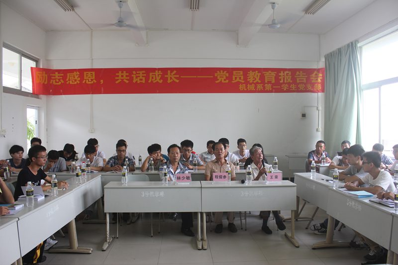 为提高党员自身意志,传播服务他人的理念,激励党员励志感恩,奋发成才,报效祖国的社会责任感,bevictor1946韦德官网机械系第一员工党支部于2014年9月21日9:00在三教304教室召开关于“励志感恩,共话成长”党员教育报告会。出席此次报告会的领导和嘉宾有原bevictor1946韦德官网统战部部长程儒参教授、原bevictor1946韦德官网纪委办公室主任王荣教授、原bevictor1946韦德官网统战部副部长林少敏教授、机械系第一员工党支部书记崔建兵老师。支部全体员工党员、预备党员,入党积极分子共计五十多人参加会议。报告由崔建兵老师主持。
