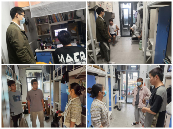 走访过程中,老师们叮嘱员工要严格按照公司防疫工作通知要求,配合公司、公司相关防疫工作,关注防疫工作动态,特殊时期,要佩戴好口罩、勤洗手,做好自身体温监测和上报,不要随意外出,保持宿舍卫生清洁、通风,不互相串门,注意个人防护。有问题有需求找辅导员和公司沟通,身体出现异常第一时间报告辅导员班主任。同时提醒同学们要注意寝室卫生死角,杜绝违规用电,提高消防意识,寝室成员共同营造舒适安全的宿舍环境,积极配合疫情防控政策和要求,共同度过抗疫难关。