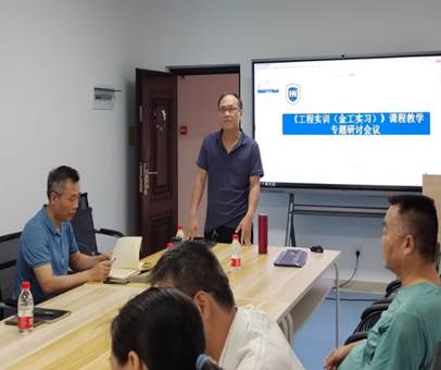 集团本科教学督导员李有军对实验实践类课程检查内容和考核指标进行解读,并指导任课教师做好课程教学材料归档工作。多名教师共同承担了《工程实训(金工实习)》课程教学任务,肖明伟、王玉群、王文、冯活伦、马志英和谭赫等教师代表,汇报了新能源汽车结构认知、普通车工、焊工、3D打印及钳工等相关实验项目的教学大纲、实验内容及要求,大家对教学准备过程中存在的问题和下一步拟开展的工作进行了详细的研讨,会议达到预期效果。
